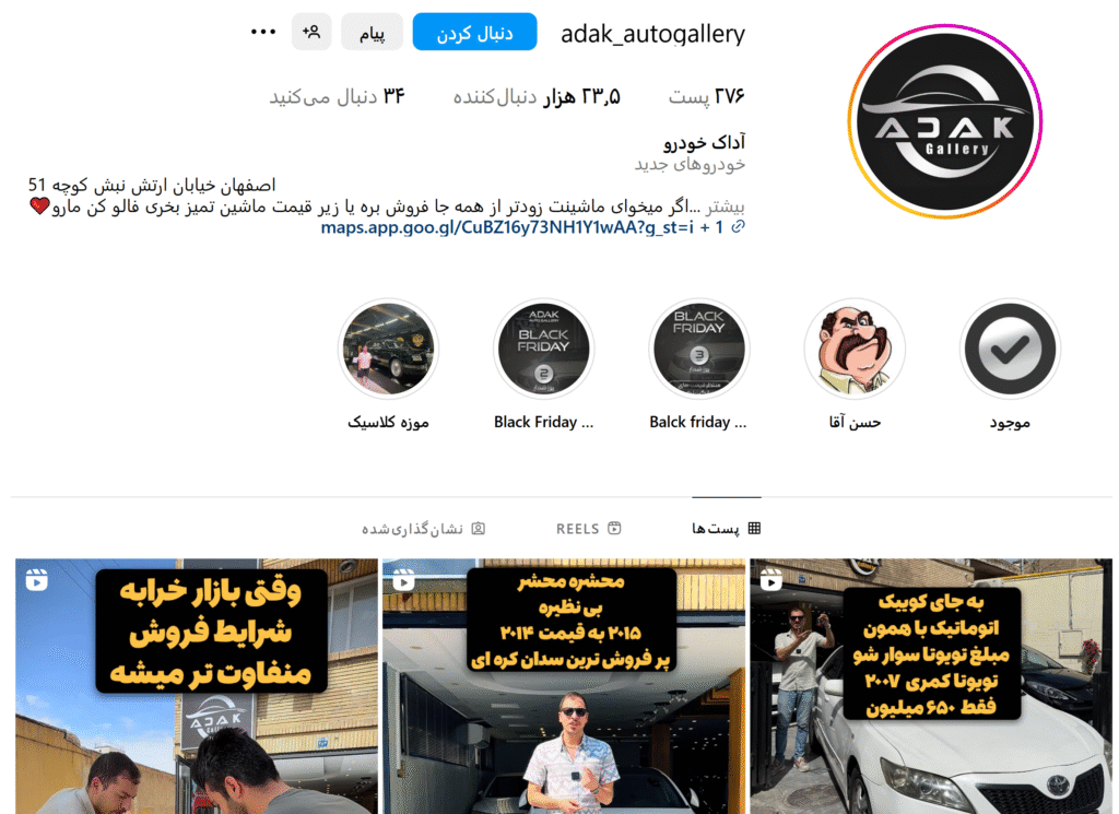 | 4 | آداک خودرو | اصفهان، ارتش، فتاح (51) | 09131183385 | 9 تا 14 و 17 تا 22 | autoadak.ir | – | @adak_autogallery |